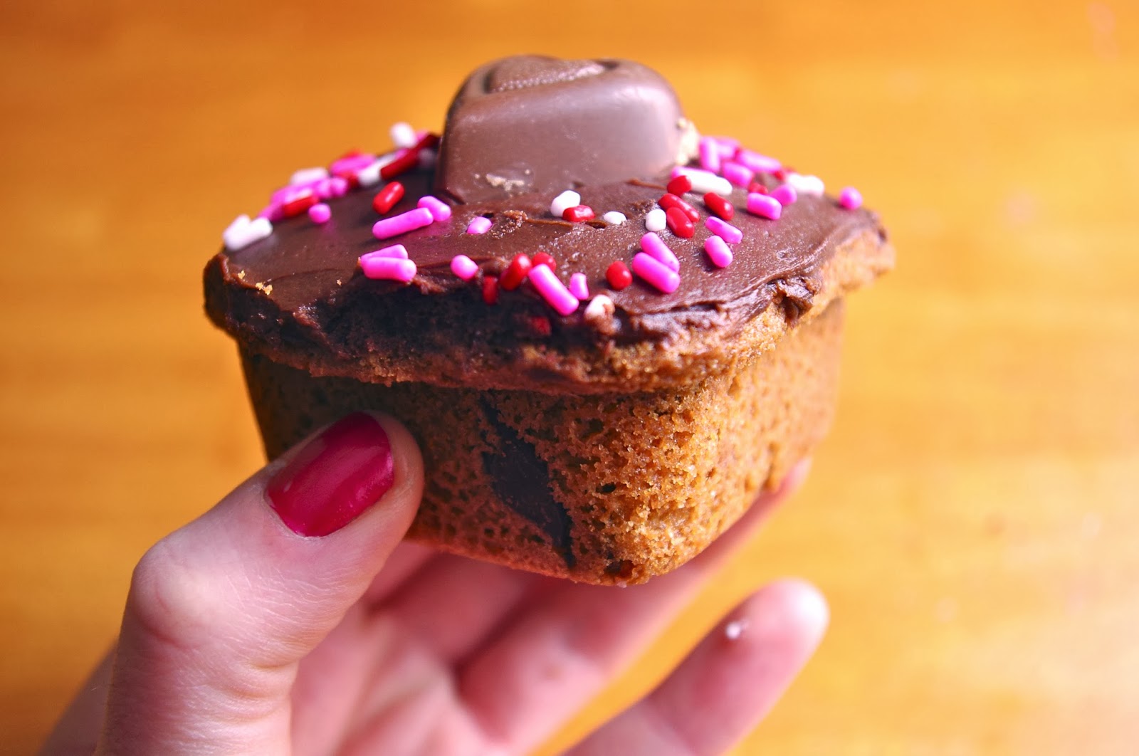 Just when you thought these couldn't sound any more divine, when they're cool we slather them with Joy's best chocolate buttercream. Yeah. That's gonna happen. And then, to top it all off? A heart-shaped Reese's, for festivity. (And because Reese's. Duh.) Plus a few sprinkles, for good measure.  Like a swipe of red lipstick, the sprinkles really tie the blondies' look together, I think.